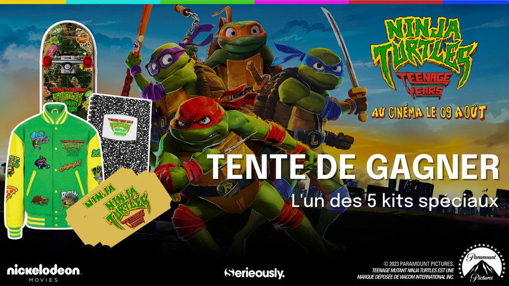 À l'occasion de la sortie au cinéma de NINJA TURTLES TEENAGE YEARS le 9 août, on te fait gagner un kit spécial aux couleurs du film contenant : 1 skate, 1 cahier, 1 veste & 2 places de ciné RT + Follow @serieously_fr et @paramountfr Tirage au sort le 08/08