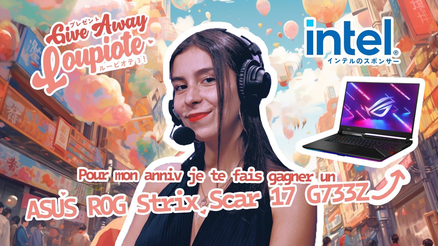 Pour fêter mes 21 ans et mon retour, @intelFrance & moi on vous offre le même PC portable de FOU que celui qui m’a accompagnée au Japon cette année 💙 ✅ Follow @intelFrance & @louhngle 🔁 RT 👾 Répondre avec le hashtag #IntelGaming + le jeu que vous voulez tryhard avec le PC