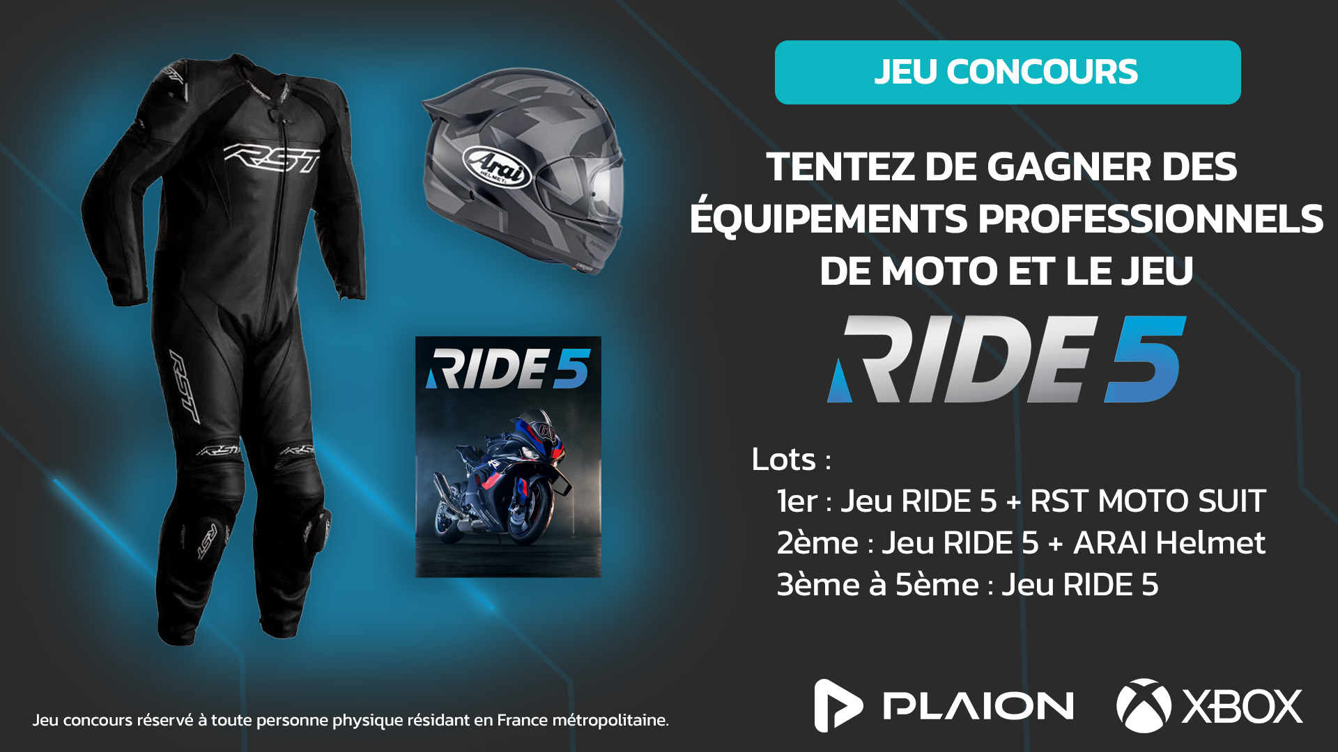 • 1 lot composé de 1 jeu vidéo Xbox "Ride 5" + 1 casque de moto ARAI valeur 610 €