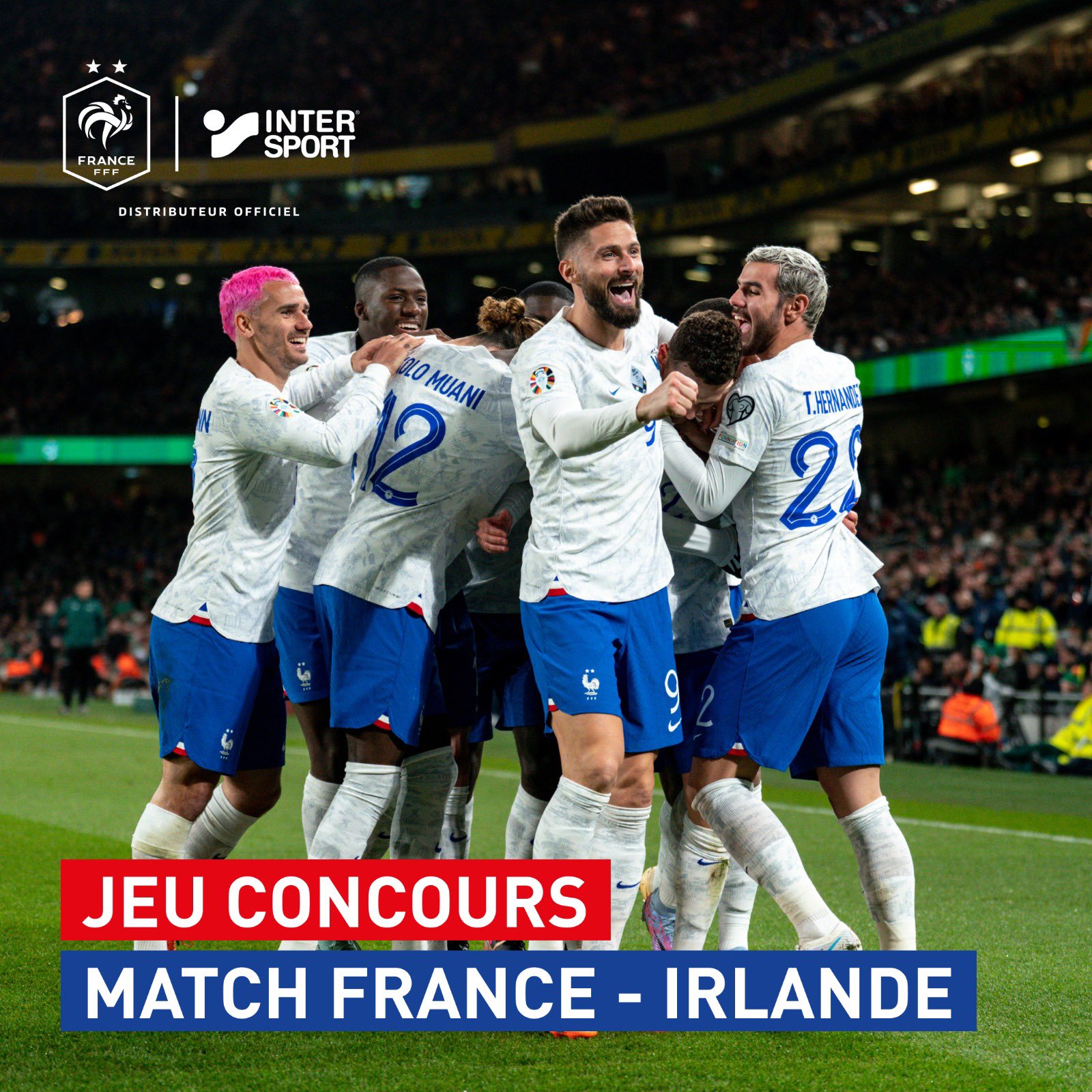 Jeu Intersport n°383095 pour gagner 2 invitations pour le match de foot France / Irlande le 7 septembre à Paris