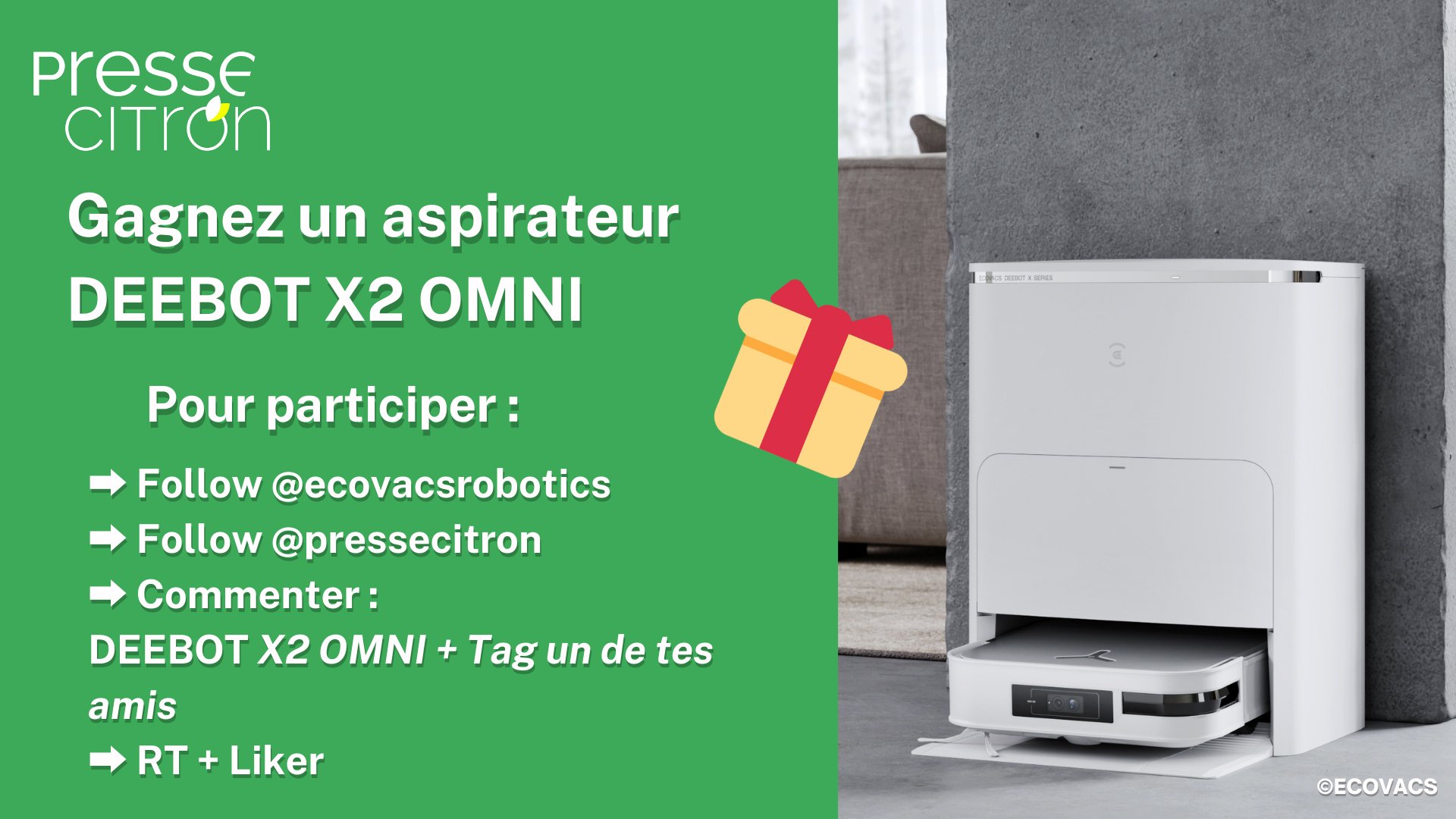 Concours Twitter : follow 2 comptes + retweet + commentez la publication avec DEEBOT X2 OMNI.