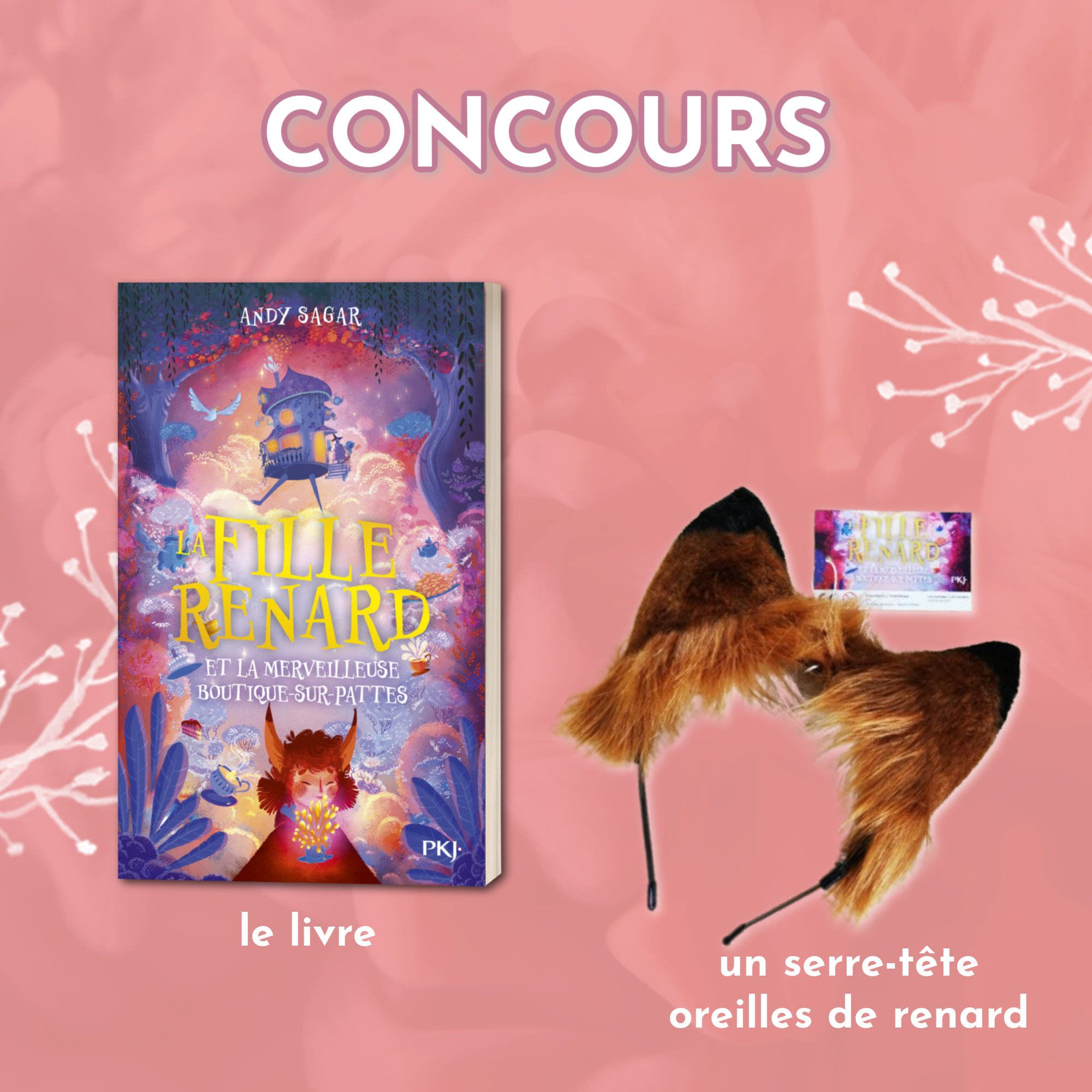 • 1 lot composé de 1 roman jeunesse "La fille renard et la merveilleuse boutique sur pattes" + 1 serre-tête oreilles de renard