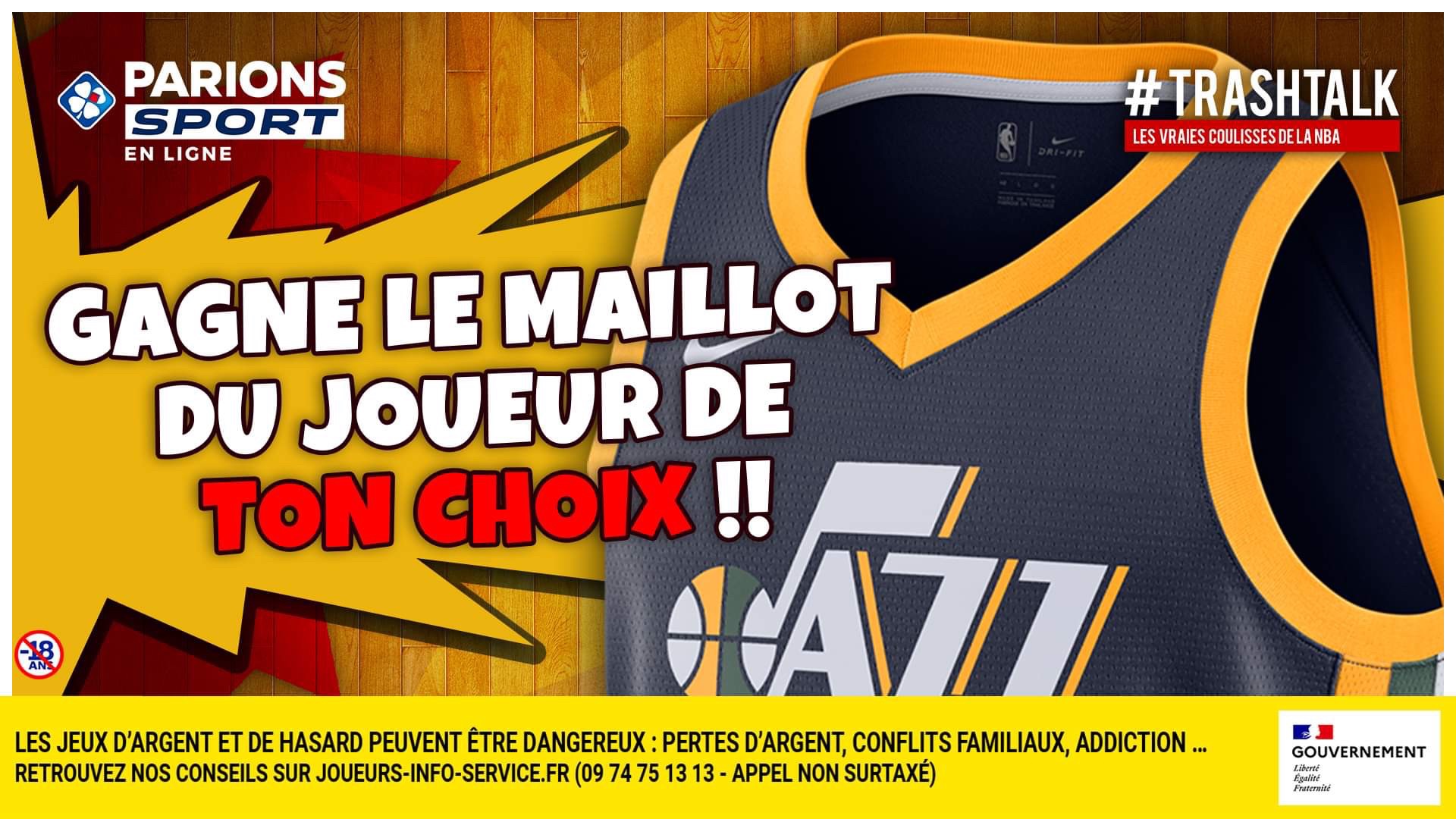 🎁 JEU-CONCOURS !! 🎁 Pour les #30PREVIEWSEN30JOURS, TrashTalk et ParionsSport te font gagner 1 maillot par jour !! 😱 🚨 GAGNE LE MAILLOT DU JOUEUR DE TON CHOIX DU JAZZ !! 🚨 Pour participer : 1⃣ RT CE TWEET 2⃣ FOLLOW @TRASHTALK_FR ET @PARIONSSPORT (TAS LE 12/10) 🔞