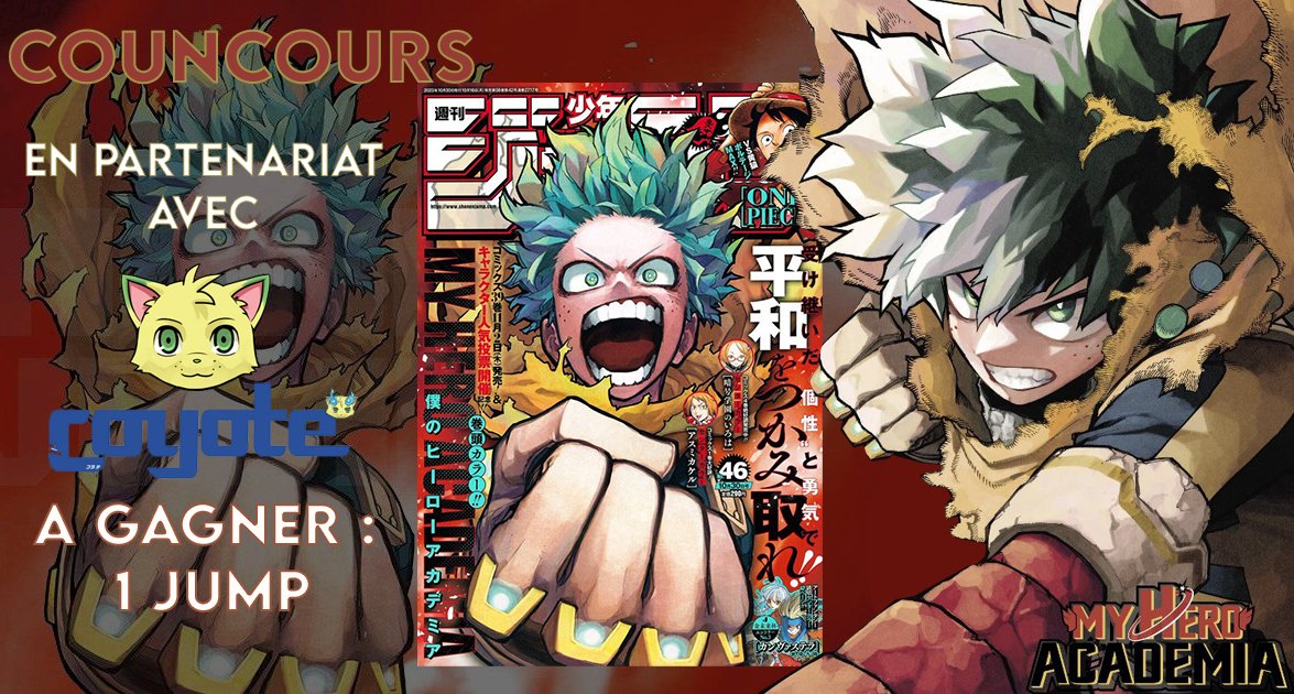 🚨[CONCOURS EN PARTENARIAT AVEC @CoyoteMag ]🎁 📖Coyote nous permettent de vous faire gagner 1Jump N°46 de #MyHeroAcademia en VO !🇯🇵 🗃️Pour participer : RT / identifier un(e) ami(e) / Follow (@CoyoteMag & @FRHeroAcademia ) Merci à eux et bonne chance à tous ! TAS : 25/10 🍀