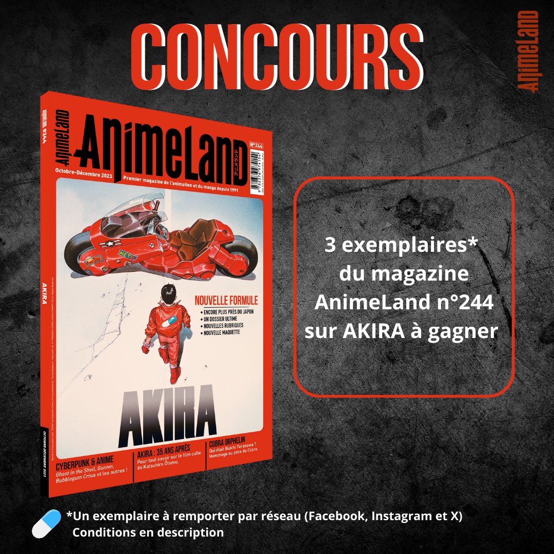 💊Embarquez dans la nouvelle aventure AnimeLand en remportant 3 exemplaires de notre numéro 244 - AKIRA et le cyberpunk ! 💊RT le post et indiquez votre personnage préféré d'Akira. 💊TAS le 23/10 à 17h