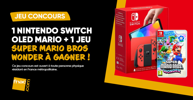 Jeu Fnac n°386993 pour gagner 1 console Nintendo Switch Oled Mario avec le jeu Super Mario Bros Wonder