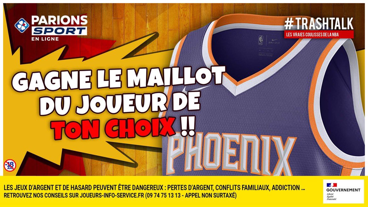 🎁 JEU-CONCOURS !! 🎁 Pour les #30PREVIEWSEN30JOURS, TrashTalk et ParionsSport te font gagner 1 maillot par jour !! 😱 🚨 GAGNE LE MAILLOT DU JOUEUR DE TON CHOIX DES SUNS !! 🚨 Pour participer : 1⃣ RT CE TWEET 2⃣ FOLLOW @TRASHTALK_FR ET @PARIONSSPORT (TAS LE 27/10) 🔞