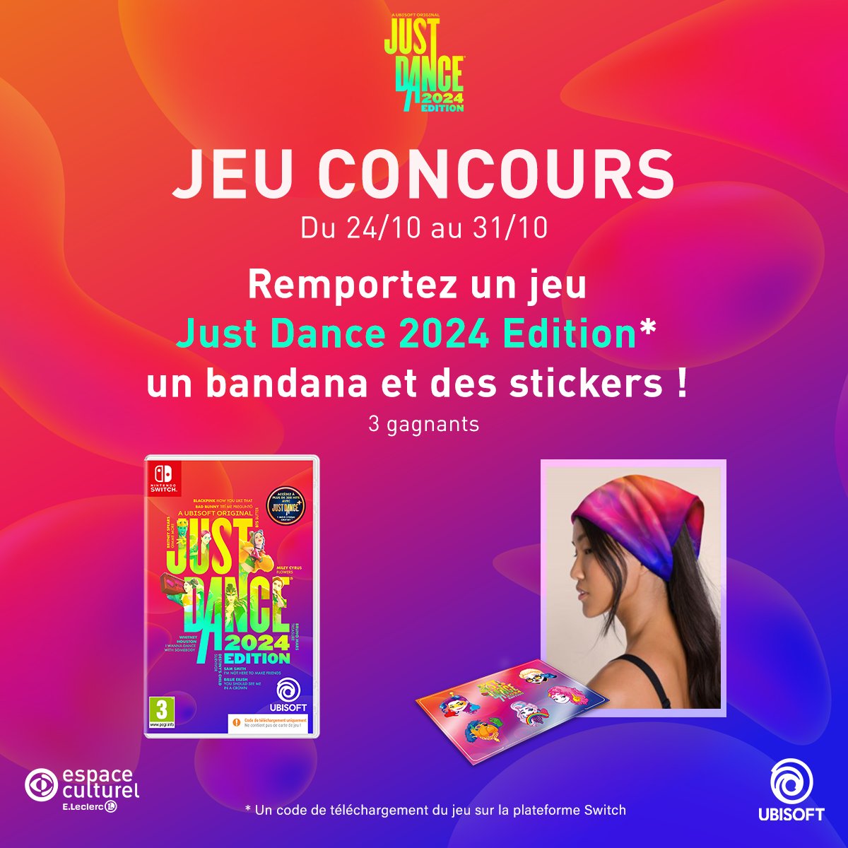 • 3 jeux vidéo "Just Dance 2024" sur Nintendo Switch avec des goodies