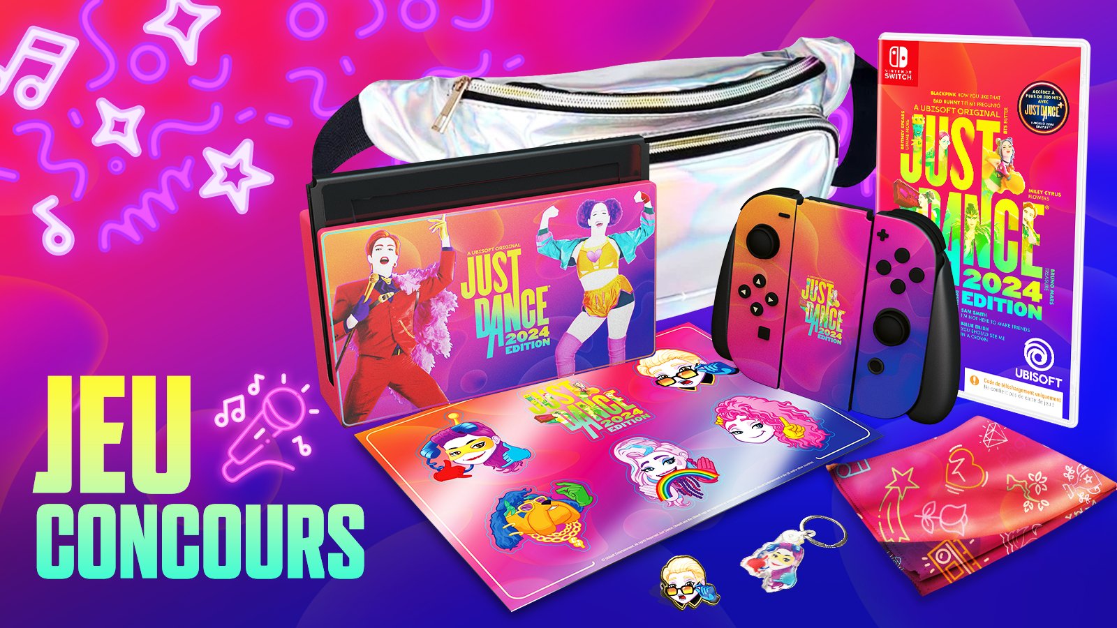 • 1 console Nintendo Switch customisée avec 1 jeu vidéo "Just Dance" et des goodies