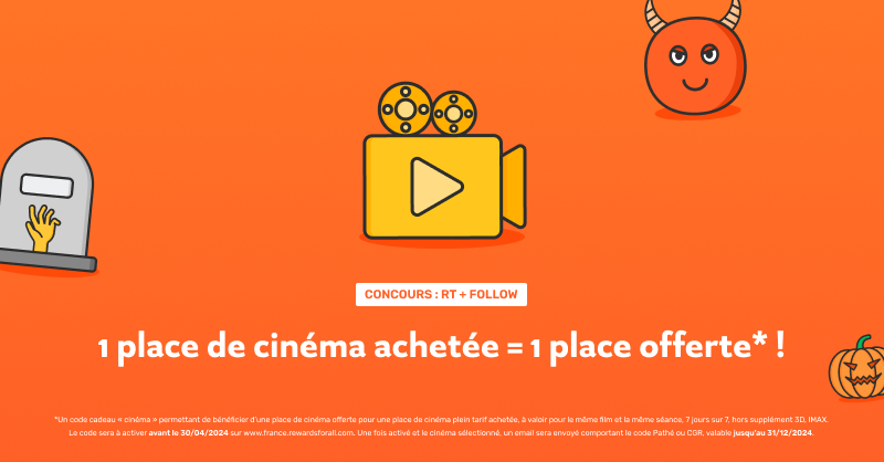 • 31 codes valables pour "1 place de cinéma achetée = 1 offerte"