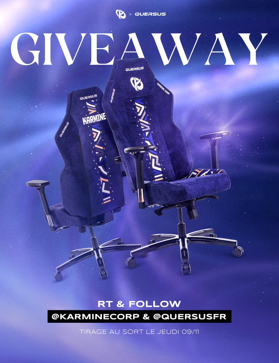 Un petit jeu concours ça vous dit ? 😁 Tentez de remporter un siège Quersus x #KCORP 💺 Pour participer : ✅RT ce tweet ✅Follow @KarmineCorp & @QuersusFR 🍀Tirage au sort le 9 novembre, bonne chance à tous !