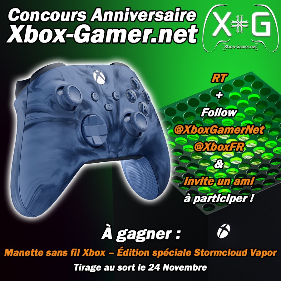🔥Nouveau concours 🔥 pour nos 21 ans, une nouvelle fois en collaboration avec @XboxFR afin de gagner une manette Xbox Edition Speciale Stormcloud Vapor ! Pour participer : 🟢 RT & Follow @XboxGamerNet et @XboxFR 🟢 Invite un ami à participer ! #XG21Ans