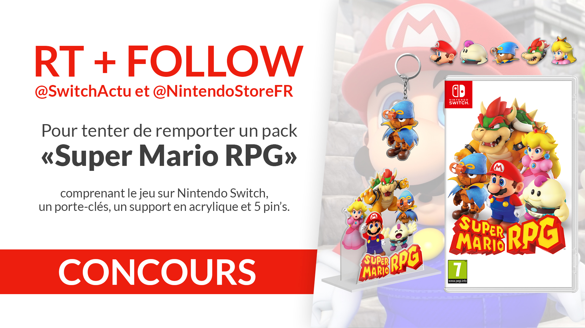 • 1 jeu vidéo "Super Mario RPG" avec des goodies
