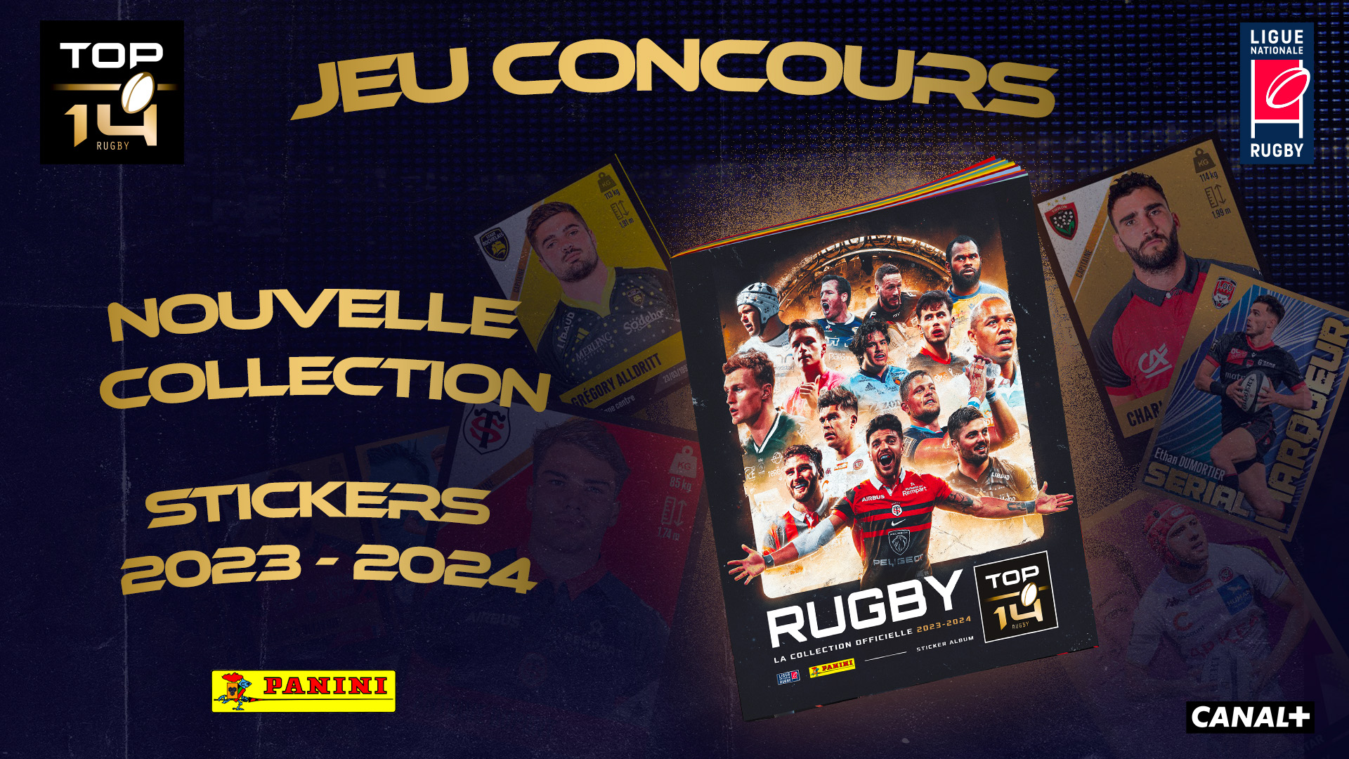 Jeu Canal n°389031 pour gagner 5 lots composés de 1 album Panini Rugby TOP 14 + 1 boîte de 36 pochettes de stickers