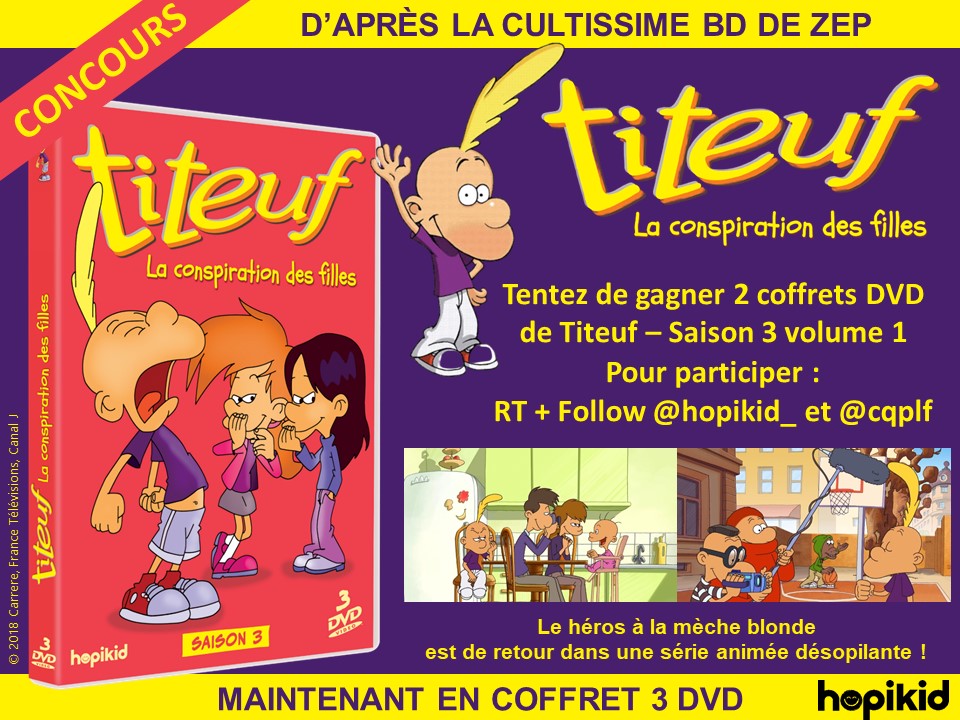 #Concours Tentez de gagner 2 coffrets DVD de Titeuf Saison 3 volume 1. Pour Participez #RT + #Folllow : @hopikid_ et @cqplf Fin du concours le 13/12/2023 à 20h Le gagnant sera contacter en DM. Bonne chance #Titeuf