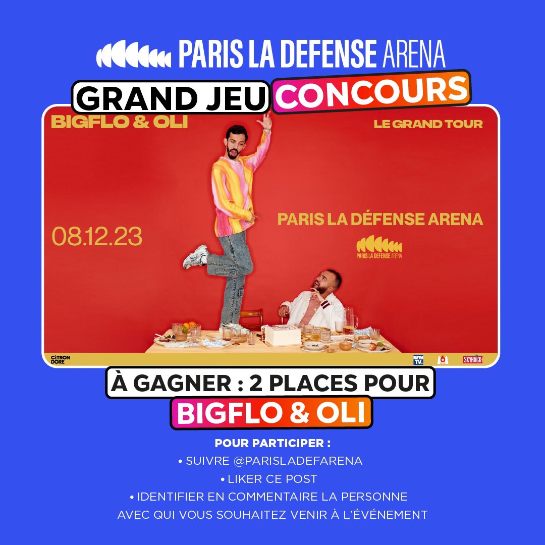 Jeu Paris La Defense Arena n°390743 pour gagner 1 lot de 2 invitations pour le concert de Bigflo et Oli le 8 décembre à Paris La Défense Arena