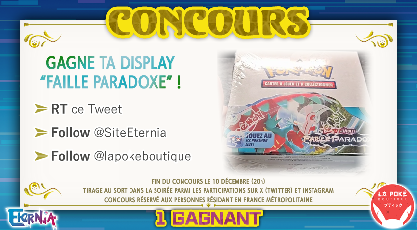 Hey ! On a une belle display Faille Paradoxe à vous faire gagner grâce aux copains de @lapokeboutique ! Un bel objet sous le sapin 😍 ! #Concours 🎁 👉 RT ce Tweet 👉 Follow @SiteEternia et @lapokeboutique 👉 Tag un ami 🗓️Fin le 10/12 à 20h 🌍France Métropolitaine seulement