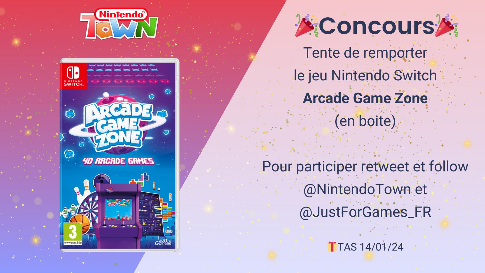 CONCOURS 🎉 On vous propose de gagner le jeu #NintendoSwitch Arcade Game Zone (en boite) qui sort ce vendredi ! Pour participer, il suffit de follow @NintendoTown + @JustForGames_FR et de retweeter cette publication👀 Le tirage au sort aura lieu le 14/1. #Concours