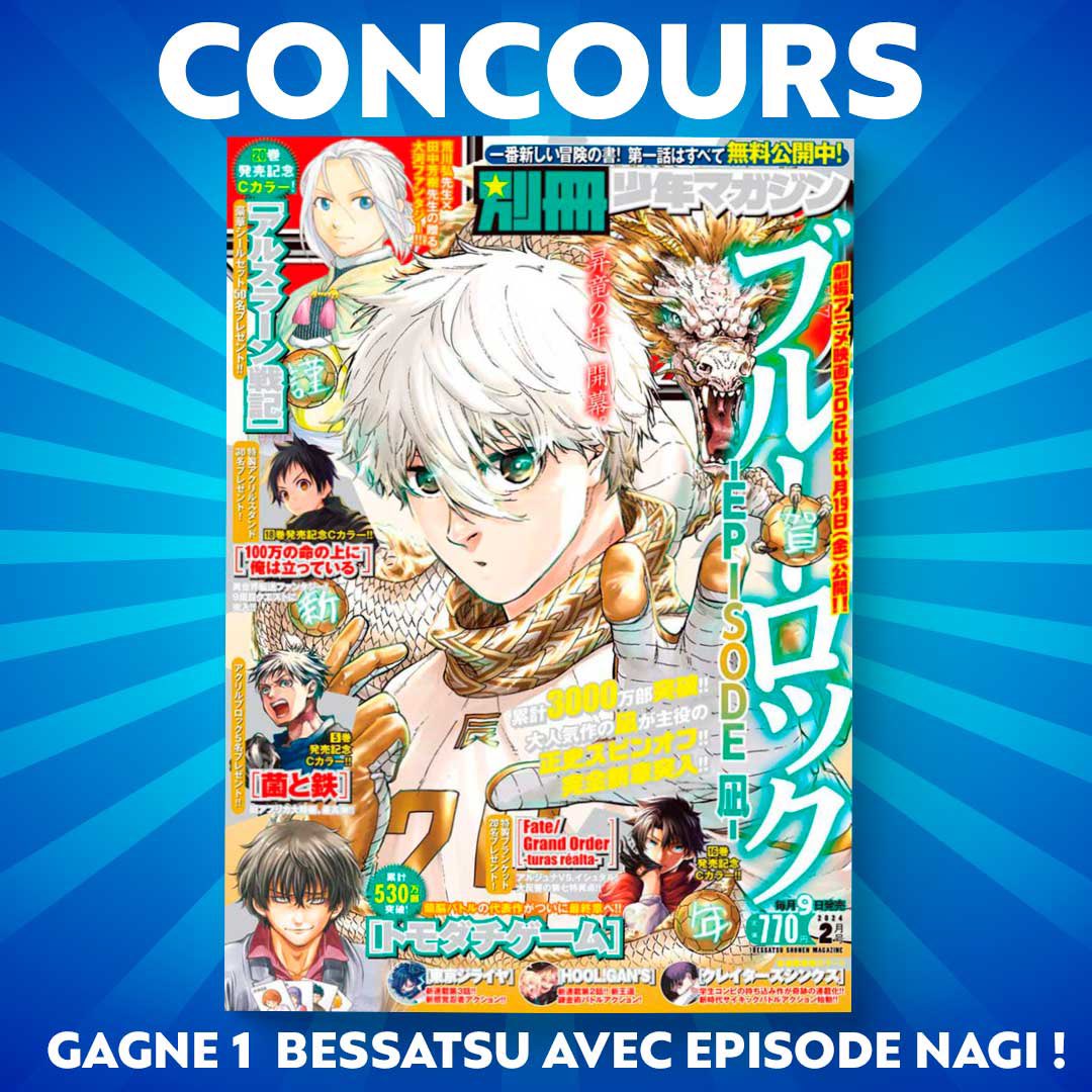 [CONCOURS] Gagne 1 Bessatsu Shonen Mag avec Blue Lock Episode Nagi en couverture ! Pour participer : suis @CoyoteMag, mets 1 like et partage cette publication ! Tu as jusqu'à lundi 29 janvier 18h pour participer ! #bessatsushonenmagazine #concours #coyotemag #bluelock