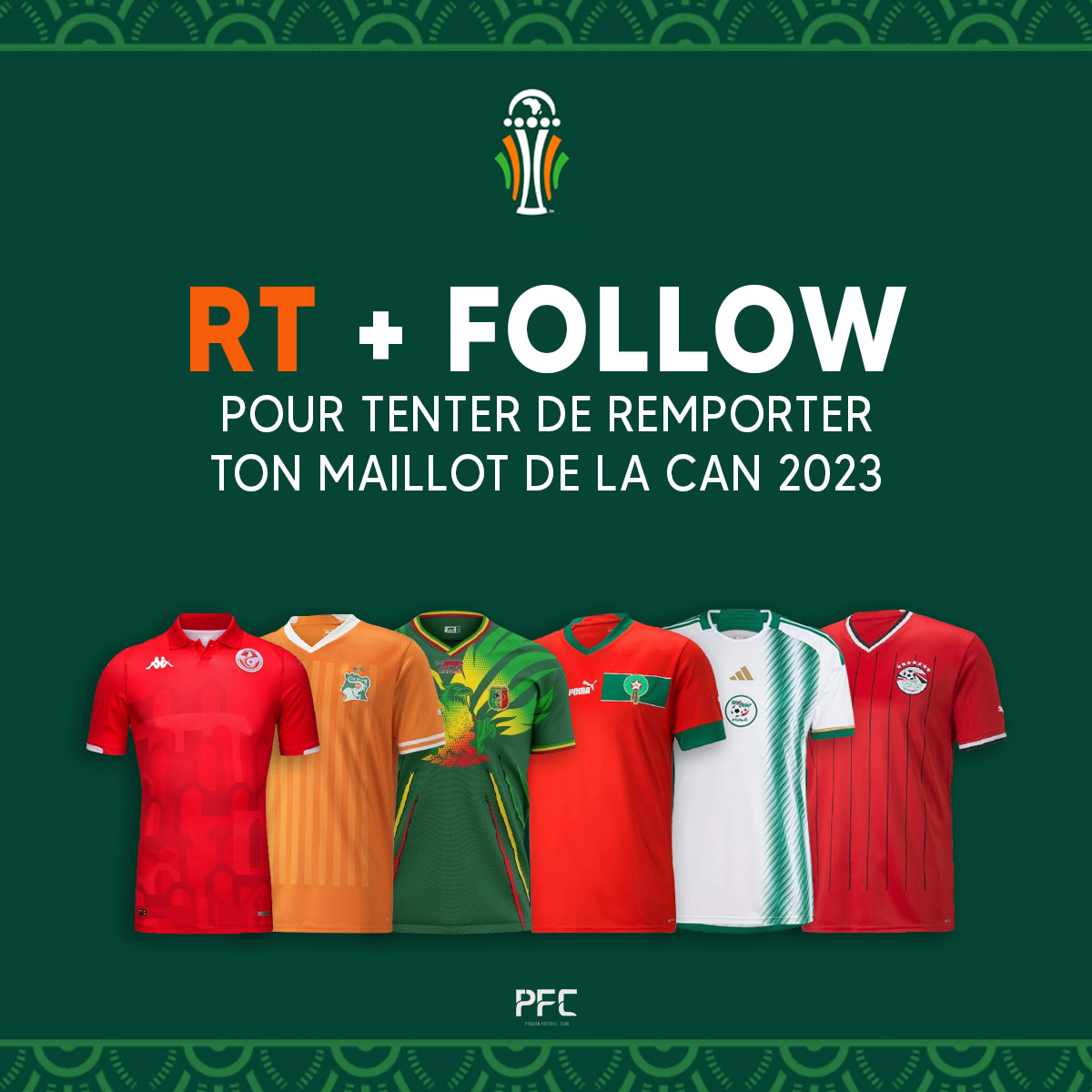 𝐉𝐄𝐔 𝐂𝐎𝐍𝐂𝐎𝐔𝐑𝐒✨🎁 RT + FOLLOW @PassionFootClub pour tenter de remporter ton maillot de la #CAN2023 au choix. Dis nous en commentaire, le maillot que tu aimerais gagner. 🤩 (T.A.S : 25/01)