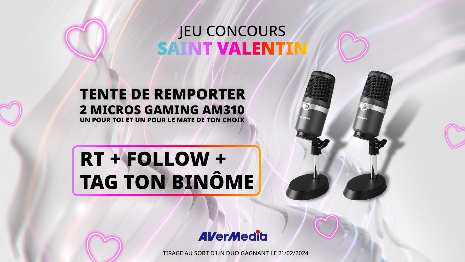 Quoi de mieux comme date que de streamer à deux ? Tente de remporter deux micros AM310 🎙 🩵RT & Follow @AVerMedia_FR 😘 Tag ton binôme de choc 💞 Triple tes chances sur Instagram & TikTok