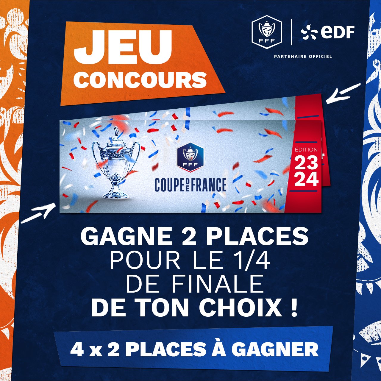 🏆 𝐉𝐄𝐔 𝐂𝐎𝐍𝐂𝐎𝐔𝐑𝐒 🏆 Les 1/4 de finale de la 𝑪𝒐𝒖𝒑𝒆 𝒅𝒆 𝑭𝒓𝒂𝒏𝒄𝒆 approchent à grands pas 🔜 Tentez de gagner vos places pour aller soutenir votre équipe de cœur ❤‍🔥 1️⃣ Indiquez le match de votre choix 2️⃣ Follow @energiedufoot