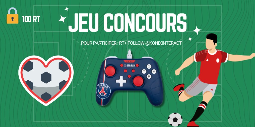 ⚽️ Quand la #SaintValentin rencontre le foot, ça ne peut que matcher ! 😄 Pour célébrer ça, on vous propose un jeu concours : à 100 RT, une mannette #PSG est à gagner 🎮💙 Et à 300 RT, on met en jeu des lots encore plus incroyables ! 🎁 Conditions : RT + follow @KonixInteract