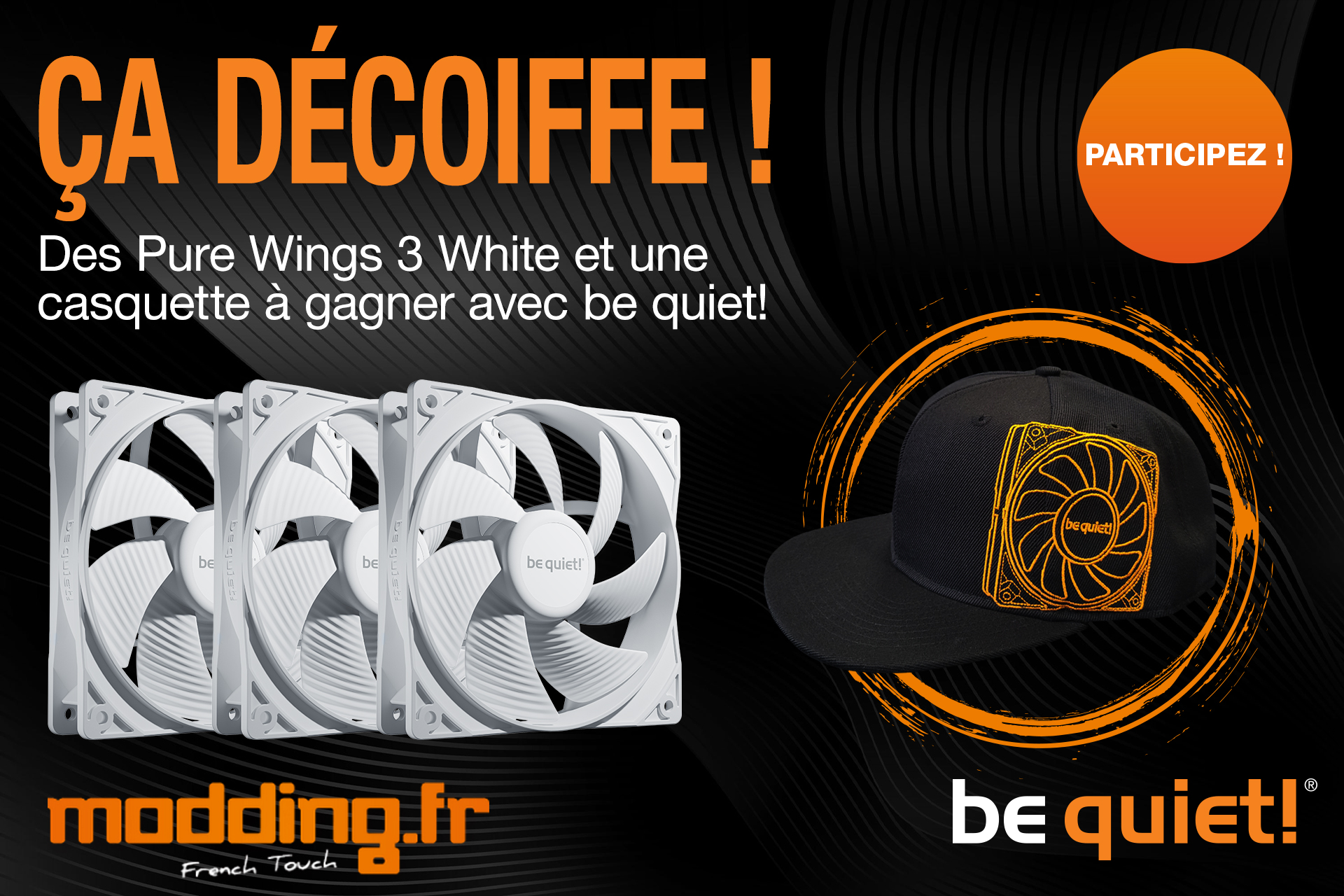 • 1 lot composé de 3 ventilateurs "Pure Wings 3 White" + 1 casquette "be quiet!"