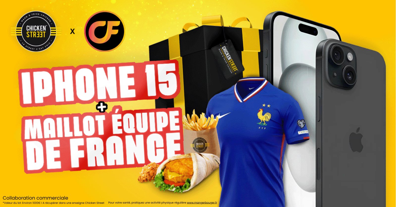 • 1 lot composé de 1 iPhone 15 + 1 maillot de l'équipe de France de football