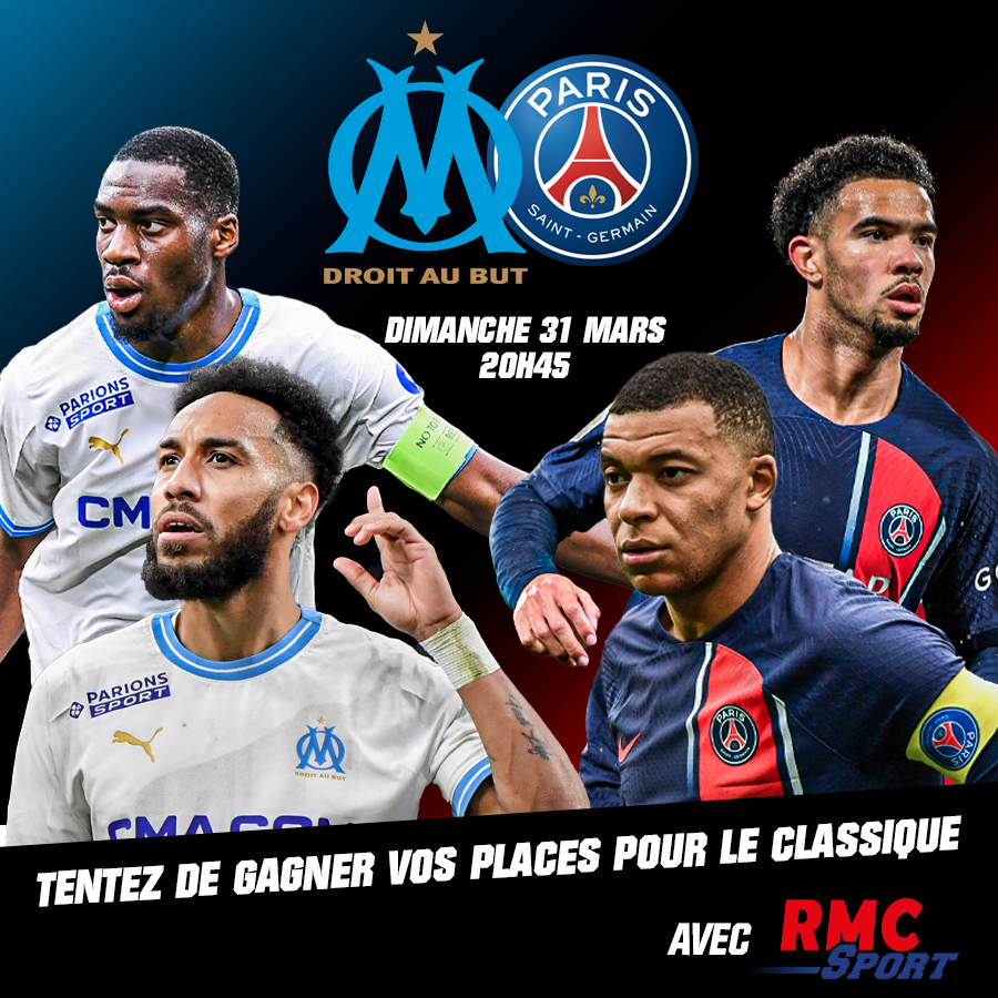 🎁 Jeu concours exceptionnel !! Tentez de remporter 2 places pour le choc : OM-PSG, ce dimanche 31 mars à 20h45 ! 📲 Pour participer : RT + follow @RMCsport et dis-nous en commentaire ton pronostic pour le match. 🍀 Bonne chance à tous !