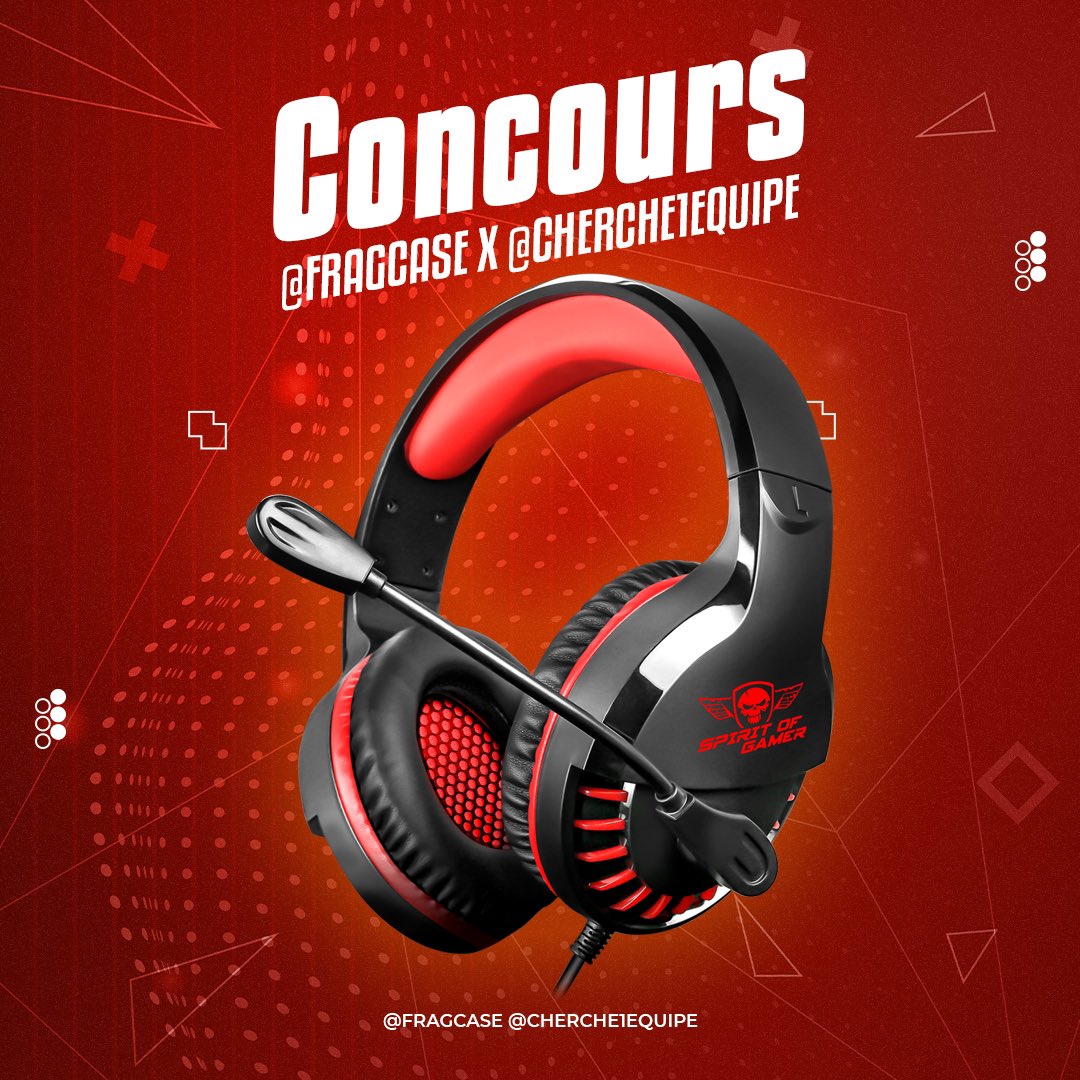🎁 #CONCOURS On vous fait gagner avec notre partenaire @Cherche1Equipe un casque gaming Spirit of Gamer ⚡️ 🔸 Pour tenter votre chance 🔁 RT ET LIKE CE TWEET ▶️ FOLLOW @Cherche1Equipe @fragcase 👥 TAG 2 PERSONNES TAS 15/04