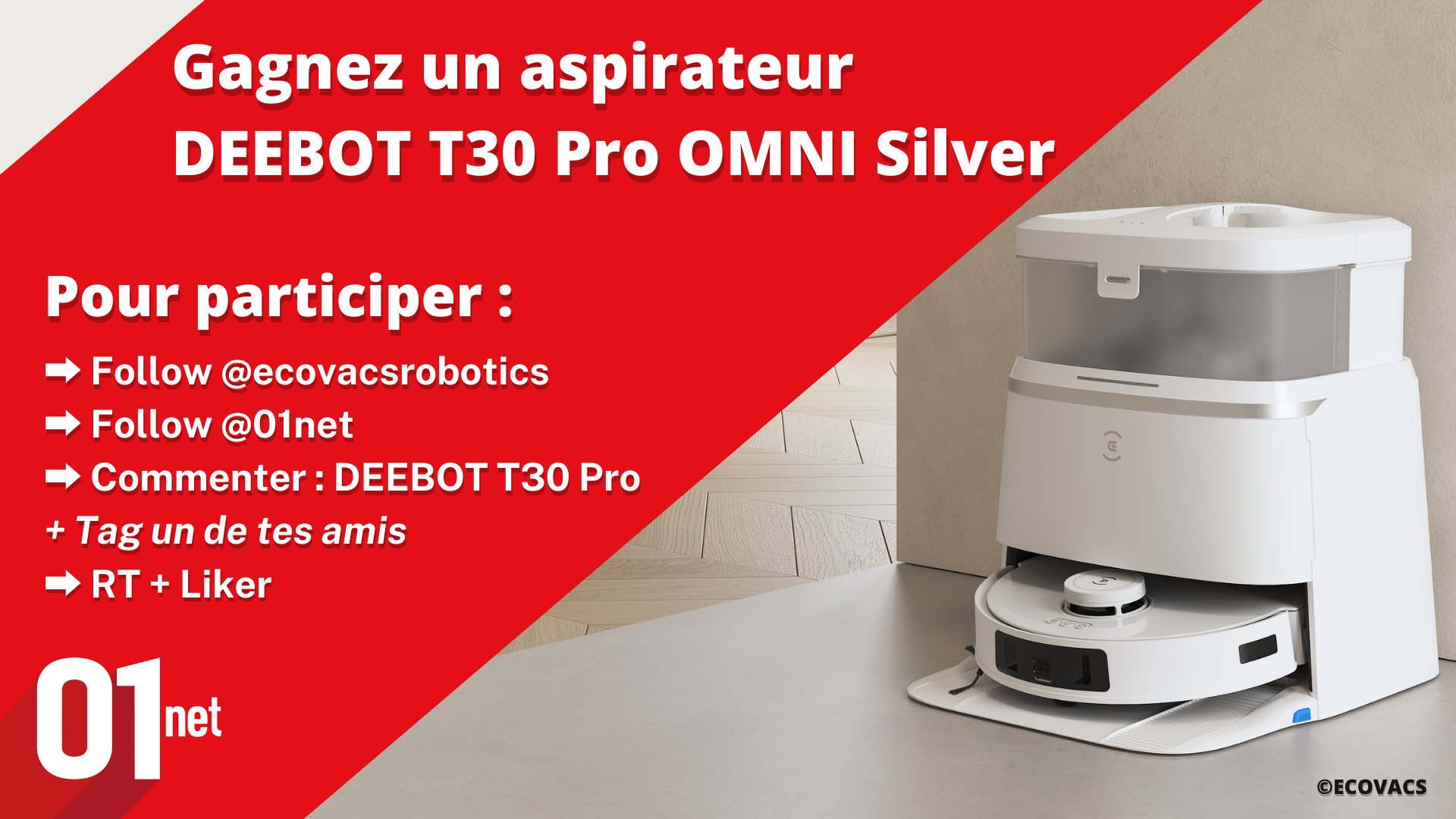 • 1 aspirateur robot Ecovacs DEEBOT T30 Pro Silver valeur 999 €