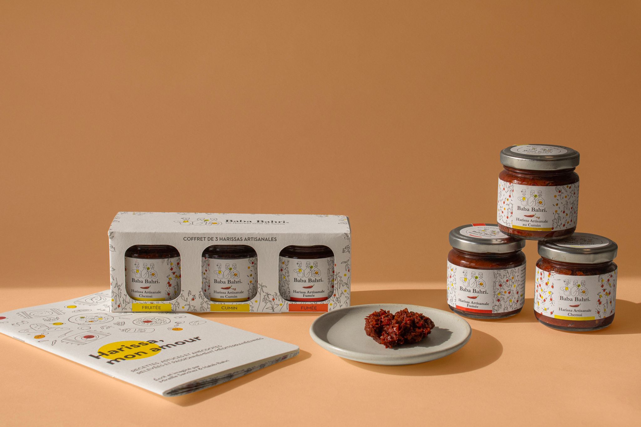 • 1 lot composé de 1 pack de sauces Harissa + 1 livre de recettes tunisiennes