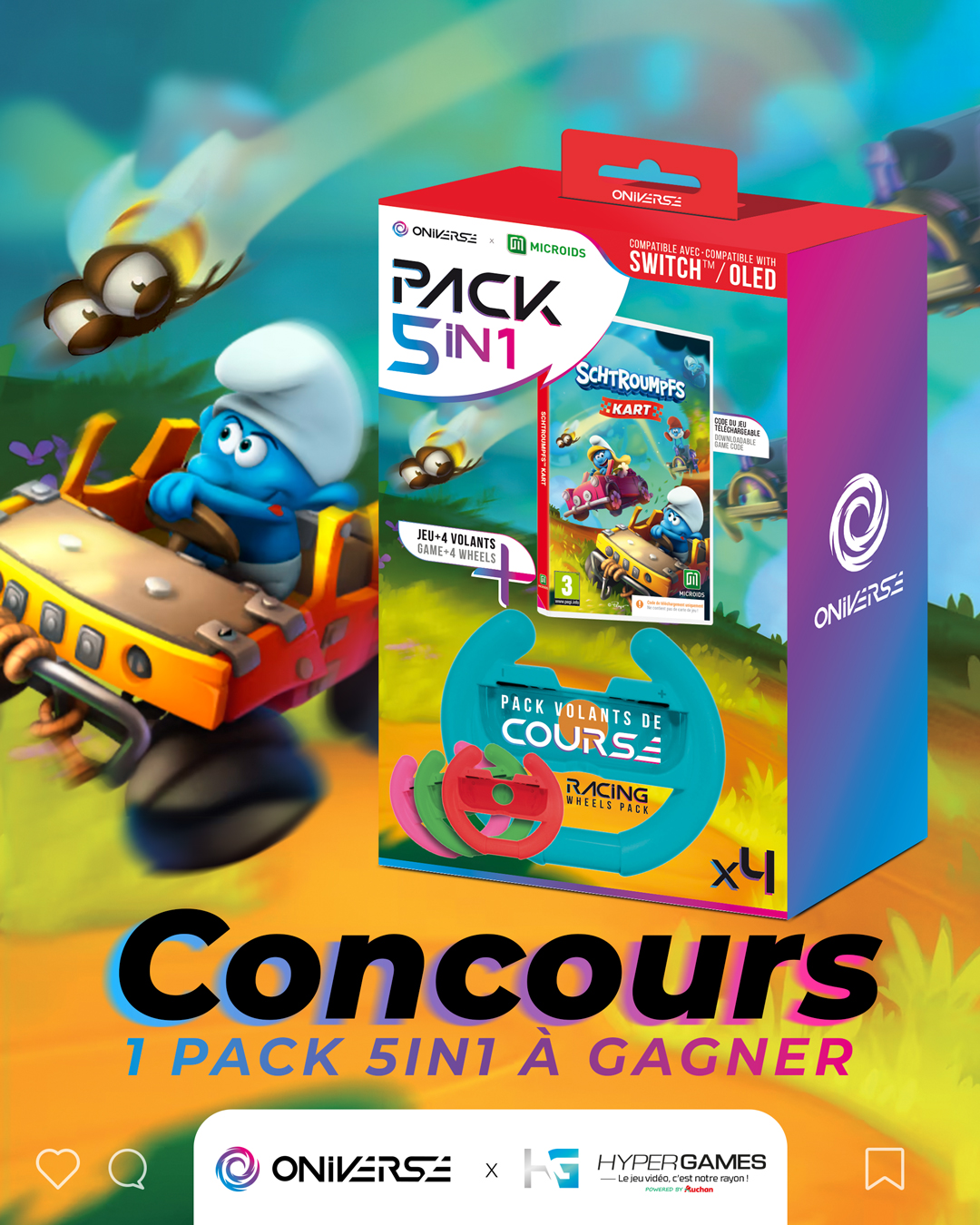 #concours Envie de sensations fortes sur Nintendo Switch ? 🏎️ Tente de remporter un pack exclusif de 4 volants SWITCH™ et le jeu Schtroumpfs Kart ! 🌟 Courses endiablées et fun assuré ! 🎮 ➡️RT + FOLLOW @HypergamesA ➡️COMMENTE AVEC LE #2IN1 TAS LE 22/04.
