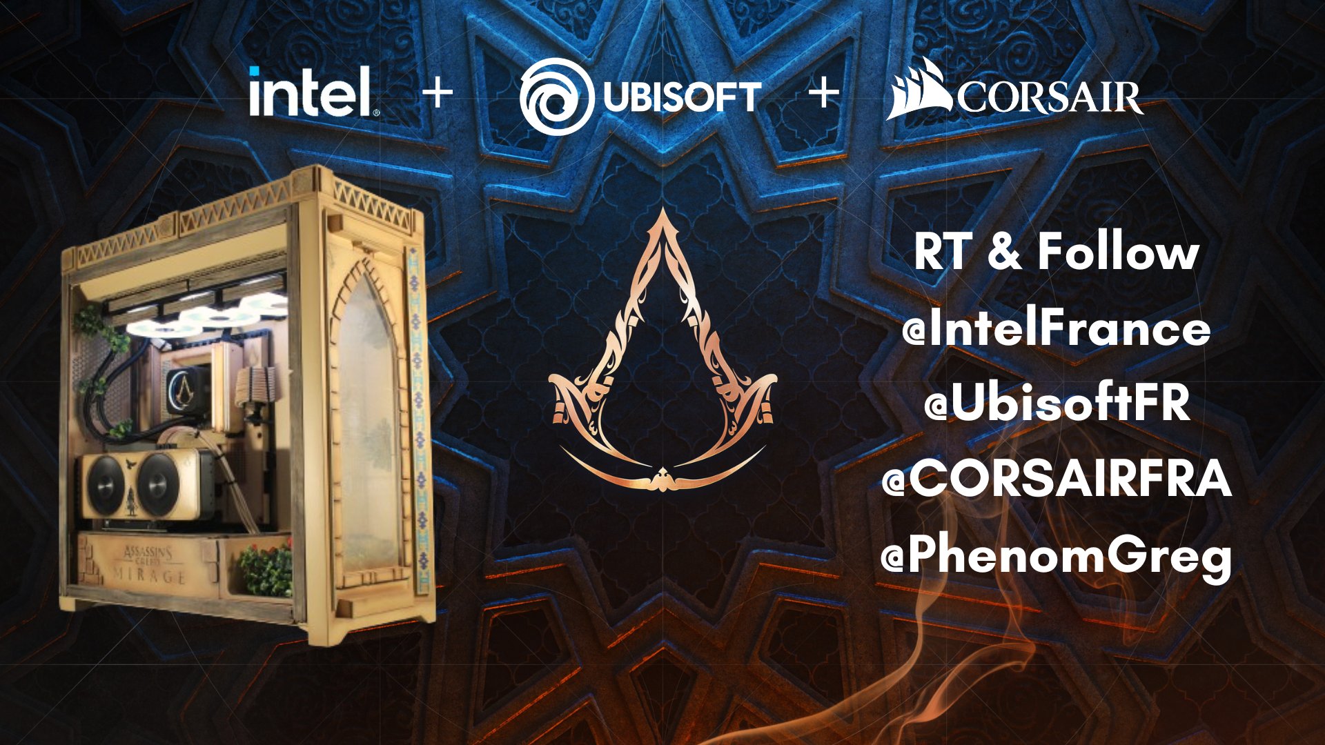 🎁#GIVEAWAY🎁 Tente de gagner cet incroyable PC Assassin's Creed Mirage. COMMENT PARTICIPER ? 🔄RT ce tweet 💬Commente ou invite tes amis 💛 Follow @IntelFrance @UbisoftFR @CORSAIRFRA @PhenomGreg 📍 Ouvert à la FR & BE ⏳ TAS le : 29/04/24