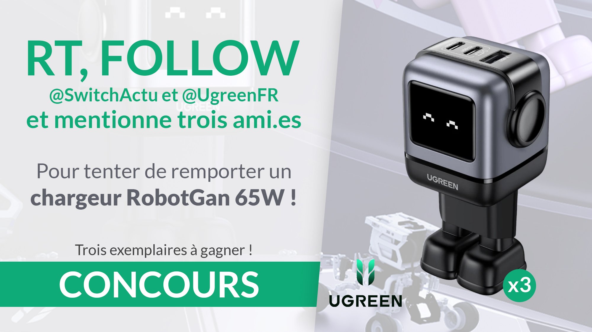 #CONCOURS - Tentez de remporter l'un des trois chargeurs RobotGan de UGREEN mis en jeu ! Pour participer : 🔁 RT ce post ➡️ Follow @SwitchActu et @UgreenFR 🗨️ Mentionnez trois ami.e.s --- 3⃣ Trois lots mis en jeu ⏳ Tirage au sort le 01.05