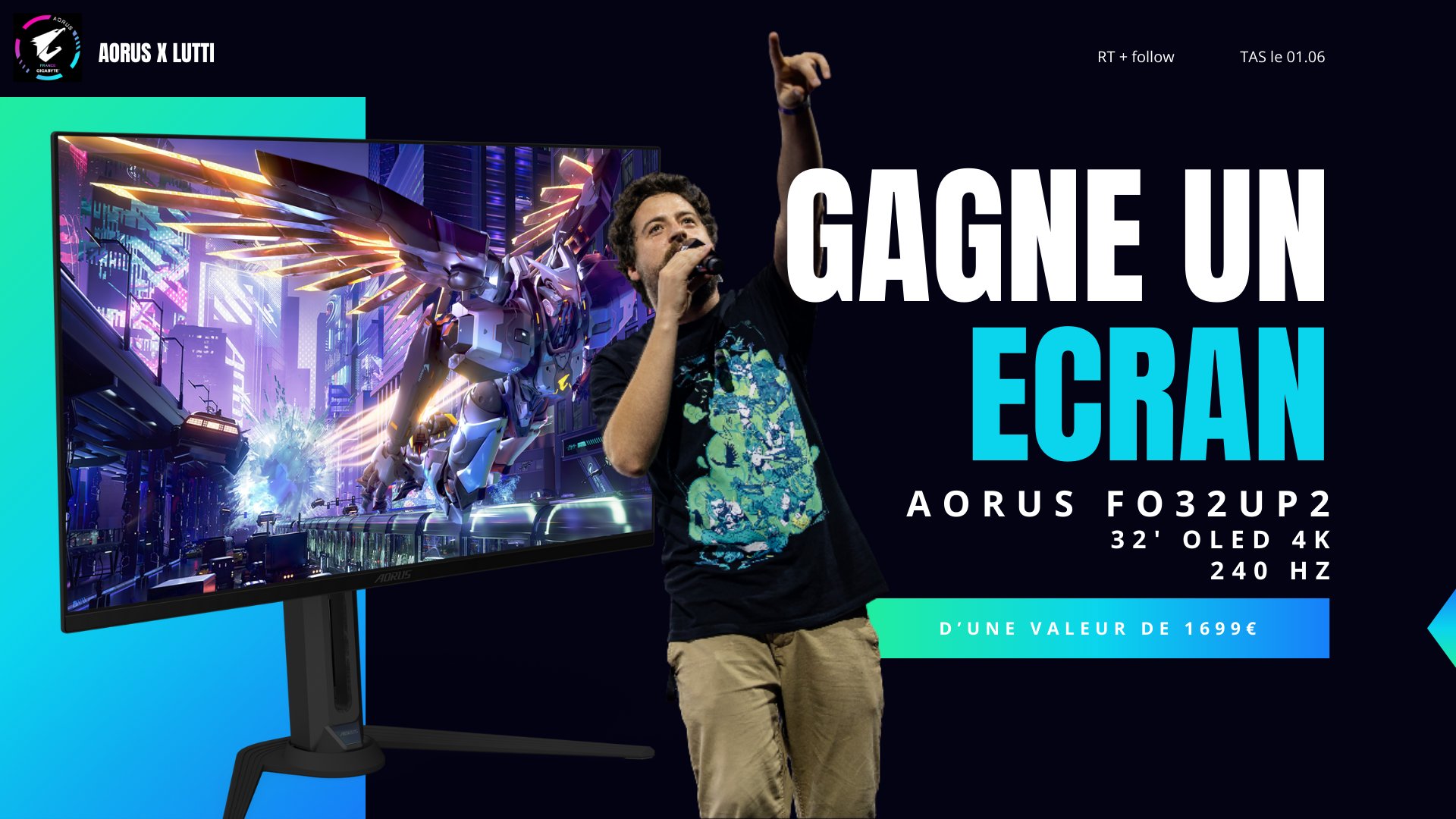 CONCOURS DE FOU ! Tente de gagner ce super AORUS FO32UP2 un écran 32' OLED 4k, 240hz 🤯 Pour participer : RT + Follow @AORUS_France et @LuttiLutti_ TAS le 1er Juin, bonne chance à toutes et à tous (je suis trop content de faire un ou une heureuse !)