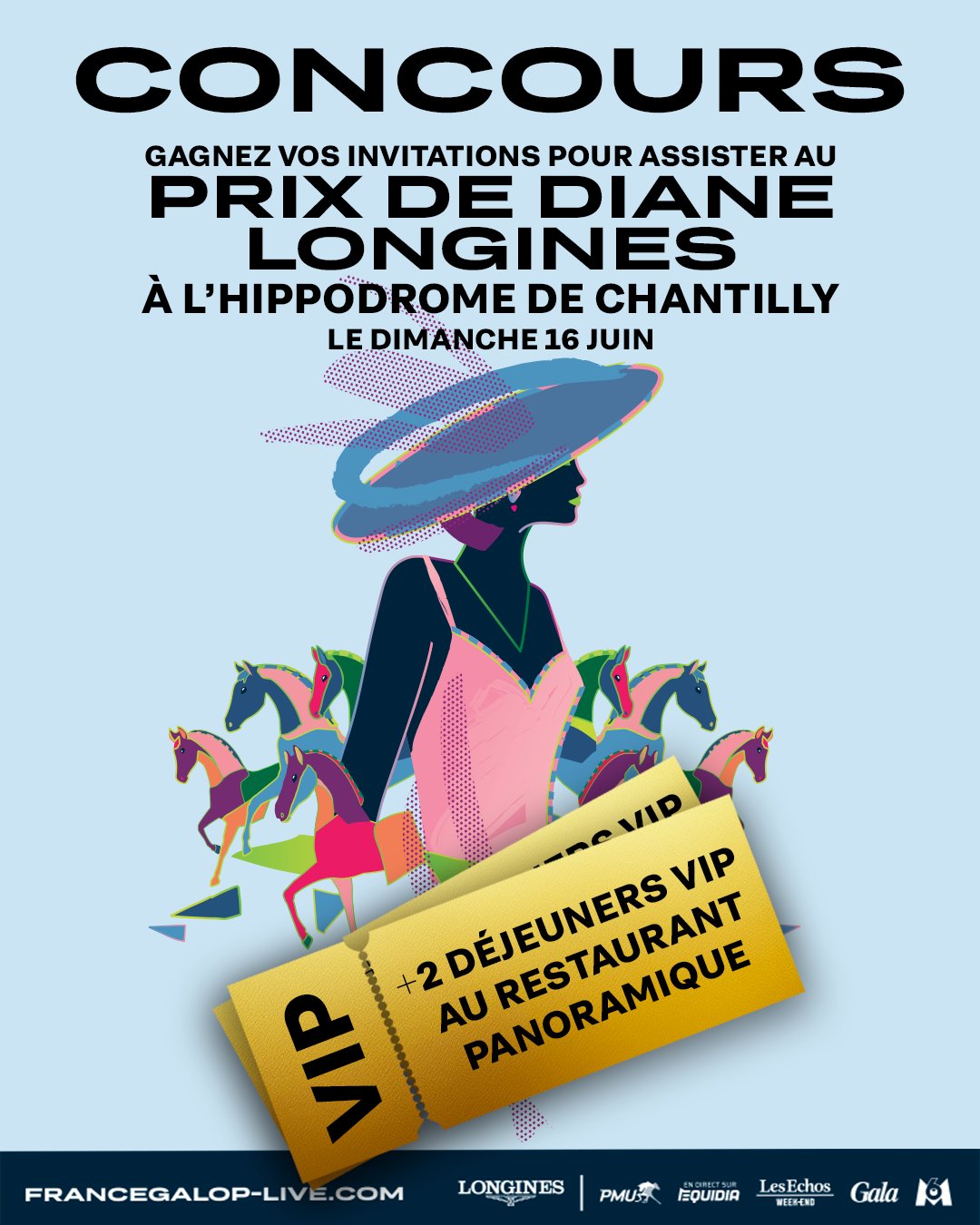 #CONCOURS 🏇 À l'occasion de la diffusion du #PrixdeDiane @Longines depuis l'hipprodrome de Chantilly, le dimanche 16 juin à 15:50 en direct sur M6, gagnez vos invitations + 2 déjeuners VIP au restaurant panoramique ! Pour participer : 👉 Être abonné aux comptes @M6 et