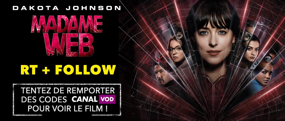 [CONCOURS] À l'occasion de la sortie de Madame Web en VOD, tentez de remporter des codes CANALVOD pour voir le film : 👉 RT + Follow @SPHEFR Concours valable uniquement en France Métropolitaine. TAS le 24/06.