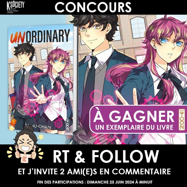 #CONCOURS - À GAGNER le tome 1 du Webtoon « Unordinary » 🎁 dispo chez @Neotoon_officiel ⭐️Pour participer c’est simple : RT & FOLLOW @ksociety_mag et @Neotoon_officiel J’invite 2 ami(e)s en commentaire. Fin des participations le 23 juin 2024 à 23:59 ⭐️https://t.co/XVnPD7BBmb