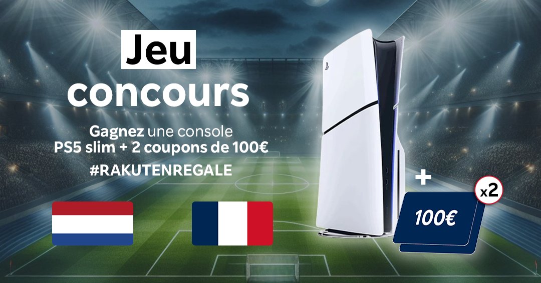 • 1 lot composé de 1 console PS5 + 2 bons d'achat "Rakuten" de 100 euros