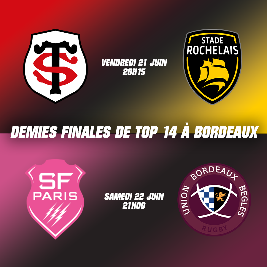 • 1 lot de 2 invitations pour assister à la demi-finale du TOP 14 les 21 ou 22 juin