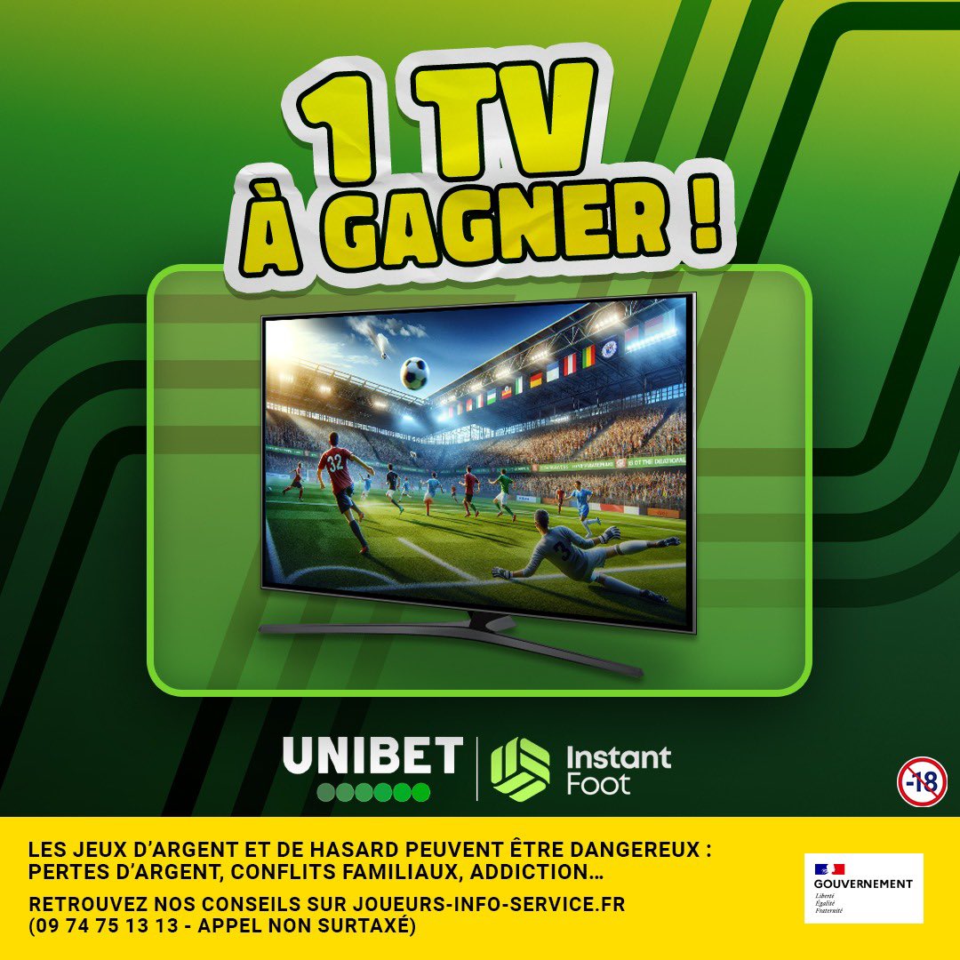 🚀 CONCOURS : Avec Unibet, on vous régale avec 1 TV d’une valeur de 500€ à gagner ! 📺🎁 🤩 Pour participer, RT ce tweet et follow @lnstantFoot & @UnibetFrance ! 📆 Tirage au sort ce dimanche ! 🍀 Bonne chance à tous 🍀