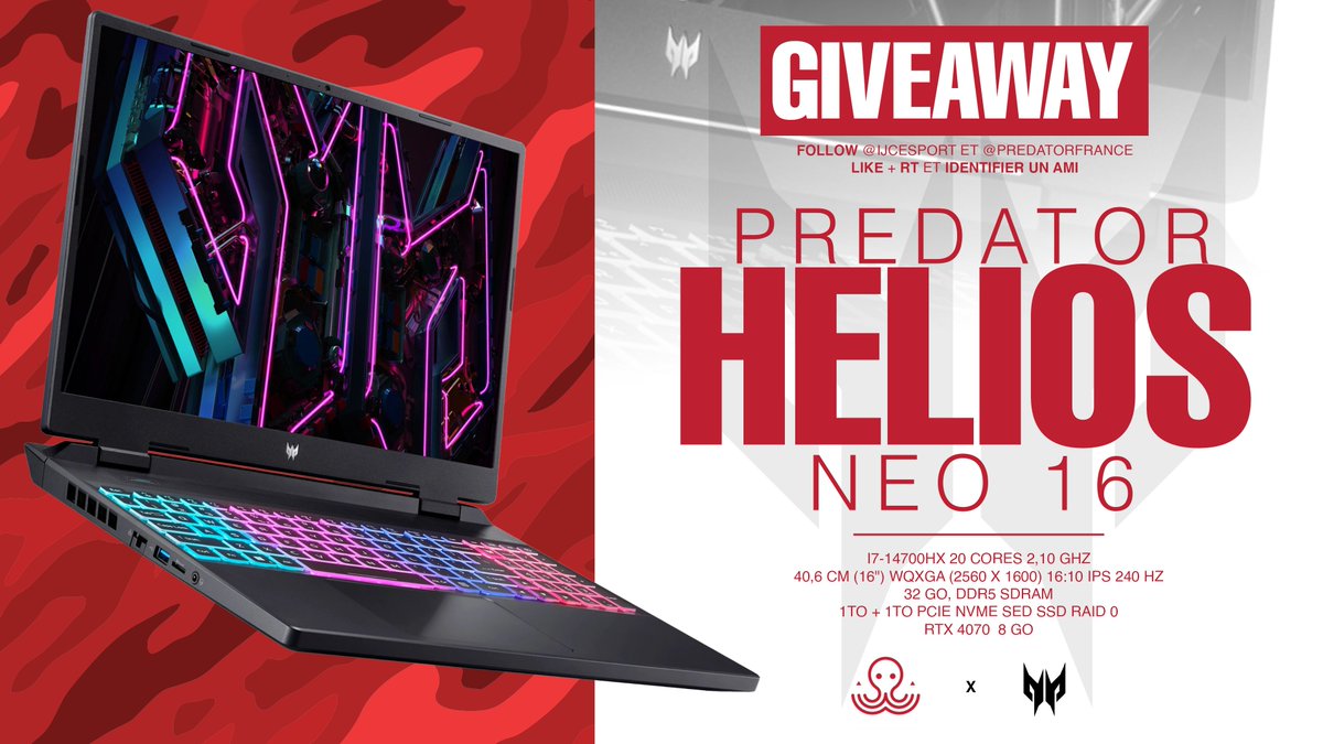 Pour fêter la qualification en Up&Down, avec @PredatorFrance, on vous fait gagner un PC Predator HELIOS NEO 16 🔥 Pour tenter ta chance, n'hésite pas à : -Follow @icijaponesport et @PredatorFrance -Like ❤️+ RT 🔁+ Identifie un ami 🗨️ TAS le 20/07