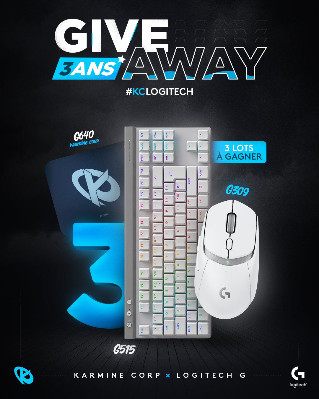 3 ans avec la Karmine Corp, ça se fête avec un beau gâteau, mais aussi de beaux cadeaux pour les meilleurs ultras ! 💙 Pour participer : ✅ Follow @LogitechGFrance et @KarmineCorp 🔁 RT ce post 💬 Commente avec #KCLogitech