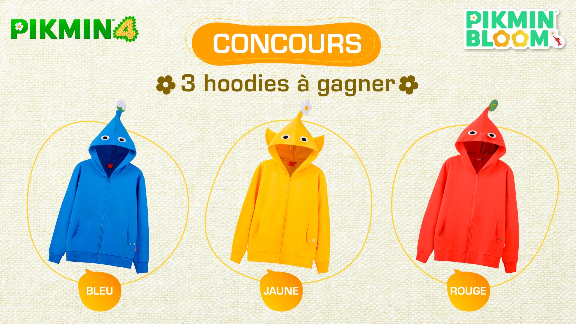 [CONCOURS 🎁] Tentez de remporter un hoodie #Pikmin de la couleur de votre choix ! Pour participer : - RT ce post - Dites nous en commentaire quelle est votre couleur préférée entre le rouge, le bleu et le jaune avec le #NintendoJapanExpo 3 gagnants tirés au sort le 19/07.