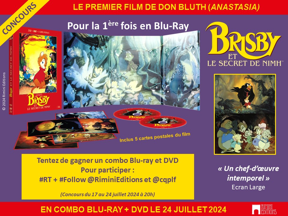 #concours Tentez de gagner un combo Blu-ray et DVD de #brisbyetlesecretdenimh Pour participer : #RT + #Follow @RiminiEditions et @cqplf (concours du 17/07/2024 au 24/07/2024 à 20h)