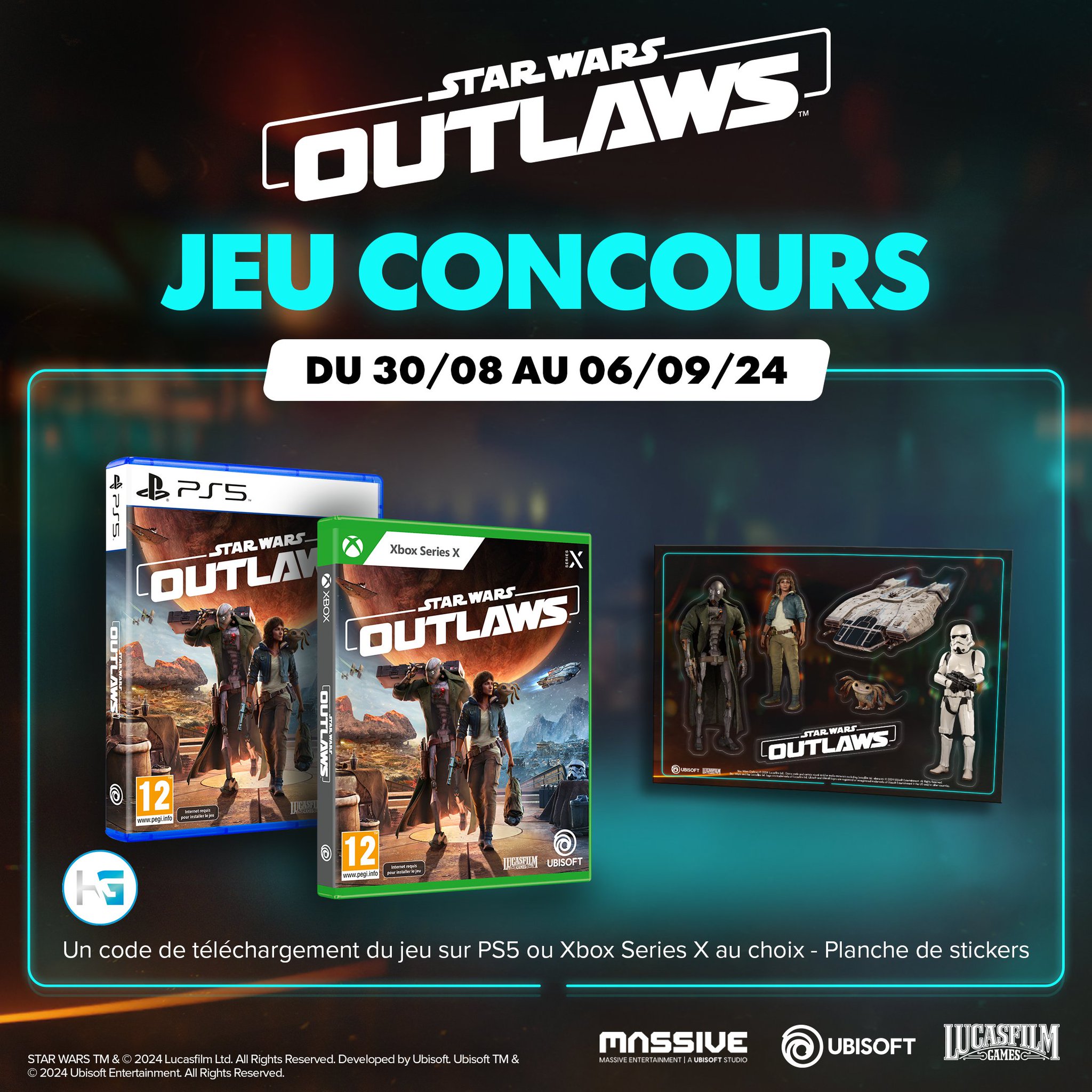 • 1 code de jeu vidéo "Star Wars : Outlaws" avec 1 planche de stickers