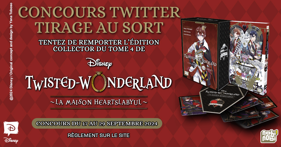 [CONCOURS] ⭐️À l'occasion de la sortie de l'édition limitée du tome 4 de Twisted-Wonderland - La Maison Heartslabyul, en librairie le 18 septembre, tentez d'en remporter un exemplaire !⭐️ Pour participer: 1⃣ Abonnez-vous à @nobi__nobi 2⃣ Likez et repostez cette publication 🔁