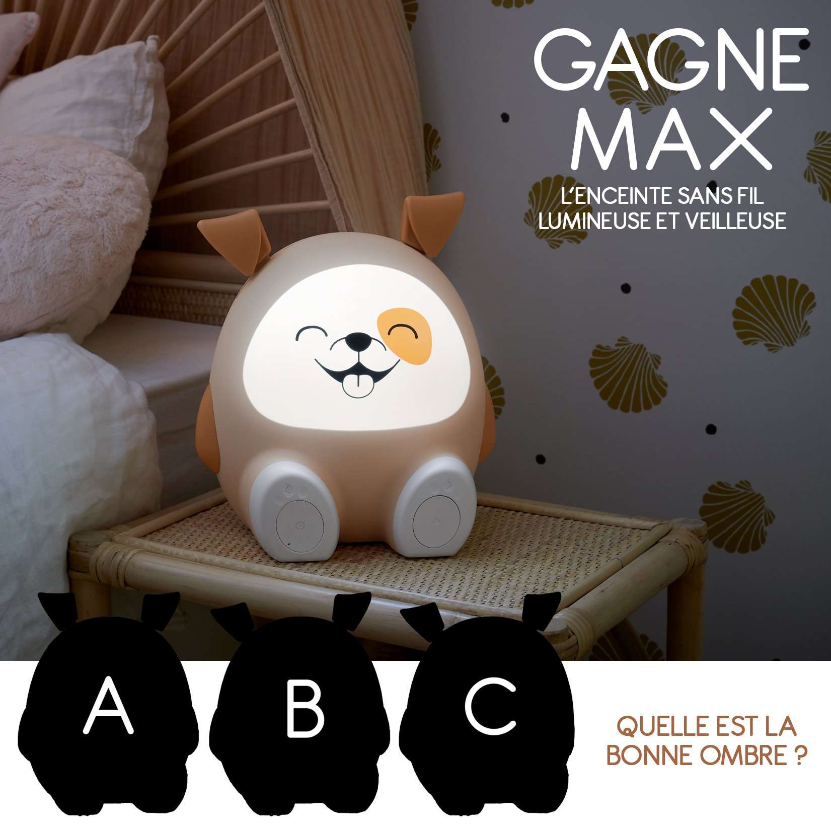 Max est une enceinte Bluetooth ou USB qui diffuse une lumière douce !🐶 Pour tenter de la gagner : 🐕 Abonne-toi à @BigbenFrance 🐕 Invite un(e) ami(e) 🐕 Retrouve l'ombre de MAX ? TAS le 03.10.24 (AUCUN gagnant désigné avant cette date 😉) #JeuConcours #BTKIDSDOG